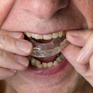 You might be recommended to use a nightguard if you are suffering from a condition known as bruxism. Bruxism causes you to grind your teeth or clench your jaw, typically when you are sleeping, although it can happen unconsciously to some people while they are awake and under stress.